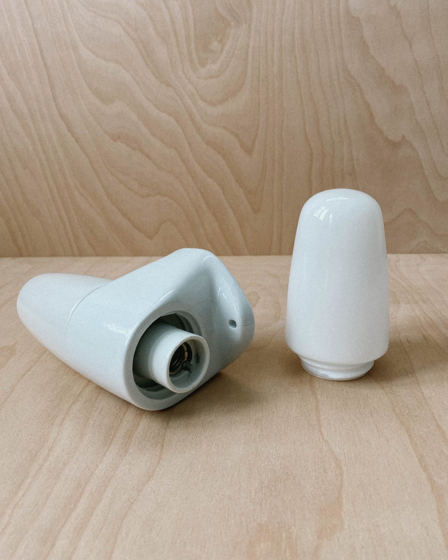 Vintage double wall sconce no. 6068 designed by Bauhaus icon Wilhelm Wagenfeld for German manufacturer Lindner Leuchten in the 1950's. Glossy white porcelain fixture with opaline glass shades, producing a soft and diffused light.