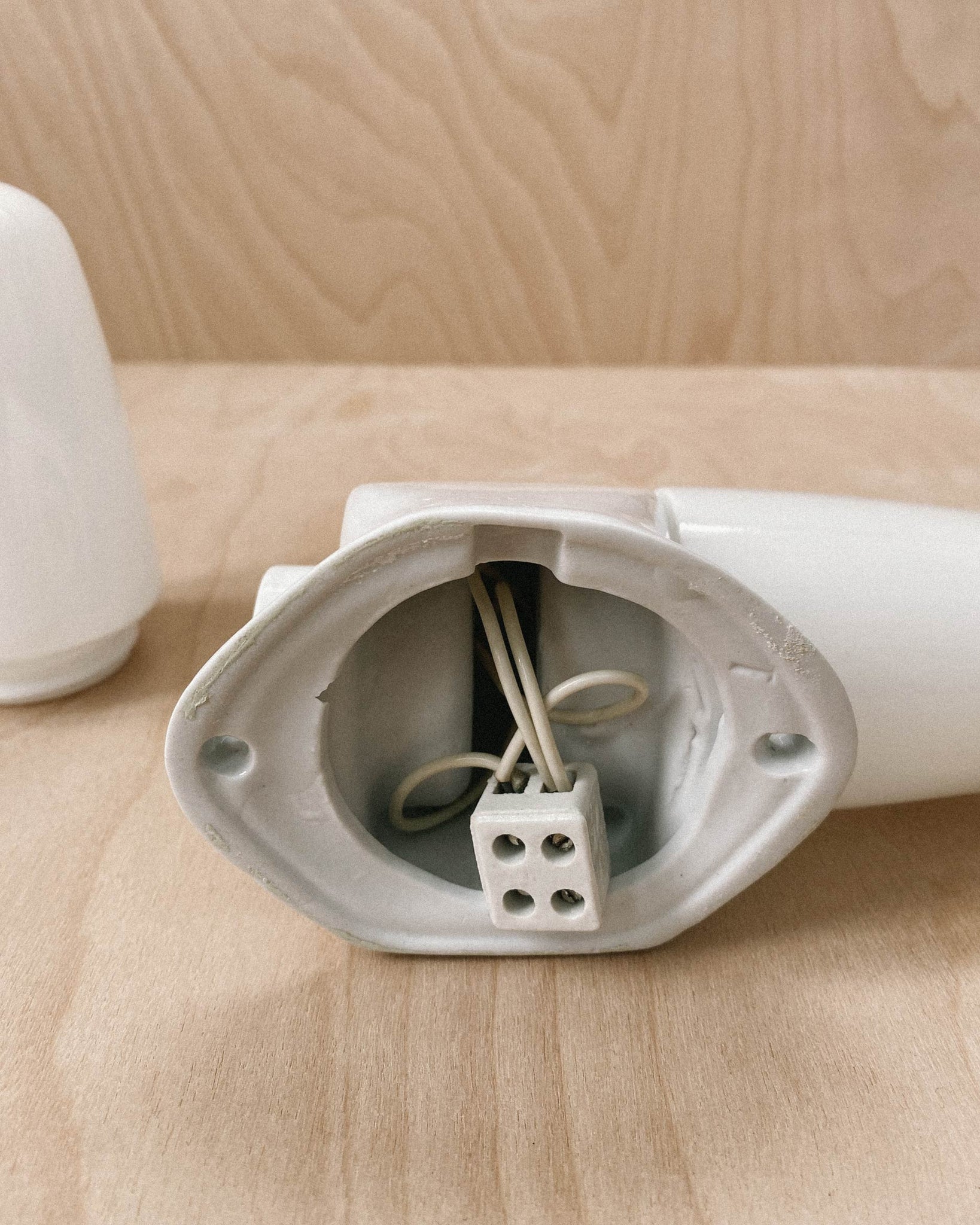 Please note that there is a crack at the back of the fixture, see images. Small bubble inside glass of one shade. Wall mounting screws are not included. The rubber gasket for tightening the glass shade is missing but it closes fine without it.