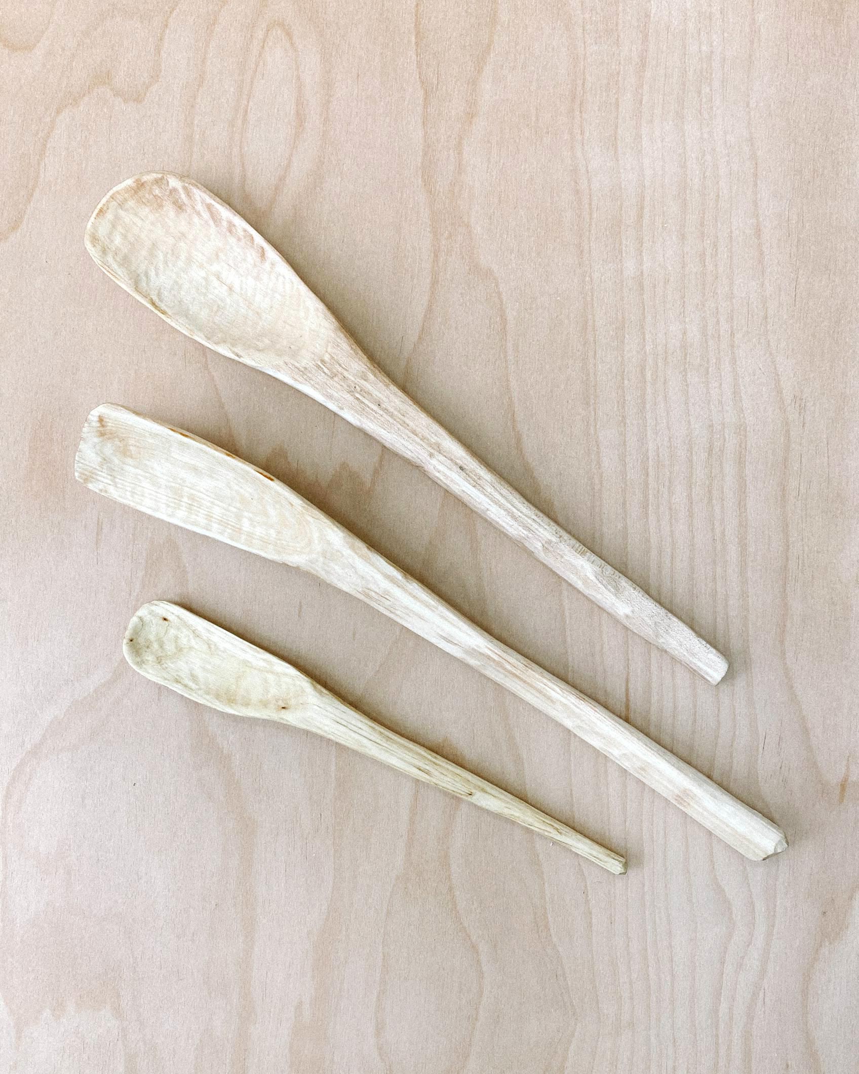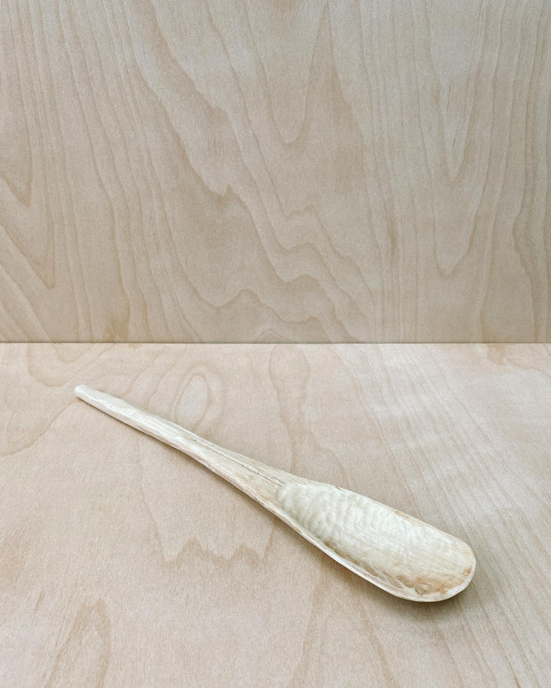 Charming hand carved spoon made from locally sourced maple wood in the Hudson Valley, New York. 13" long, good size for cooking or serving. Keep the wood conditioned with mineral oil.